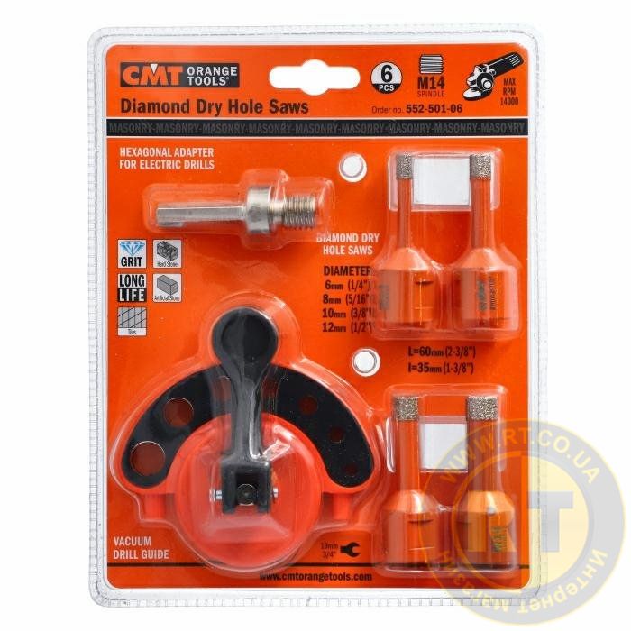 552- Набір висвердлювачів та аксесуарів для роботи кутовими шліфмашинами, діаметр 6,8,10,12 мм CMT 552-501-06