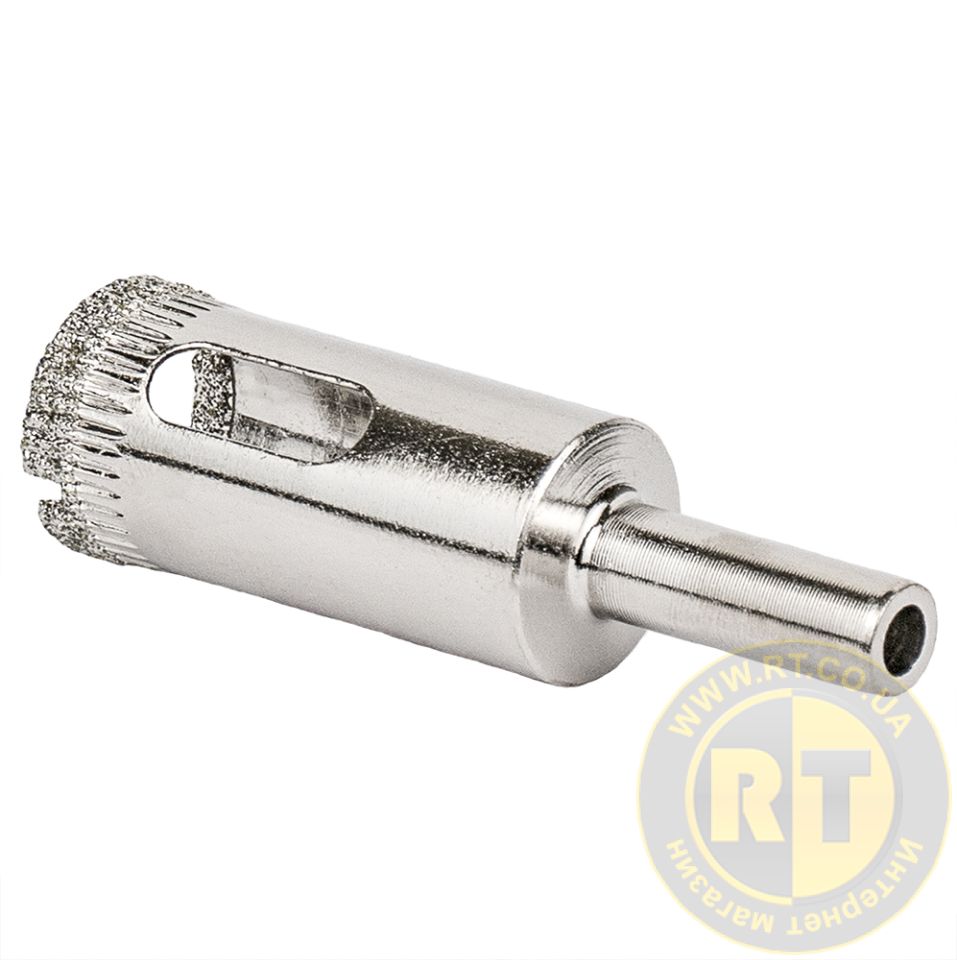 Представляет собой тонкостенную трубку, на одной из сторон которой закреплены алмазы, на другой - хвостовик, который зажимают в патроне электродрели. Разрезы в коронке облегчают удаление фрагмента, который остается внутри после того, как она пройдет материал насквозь.
