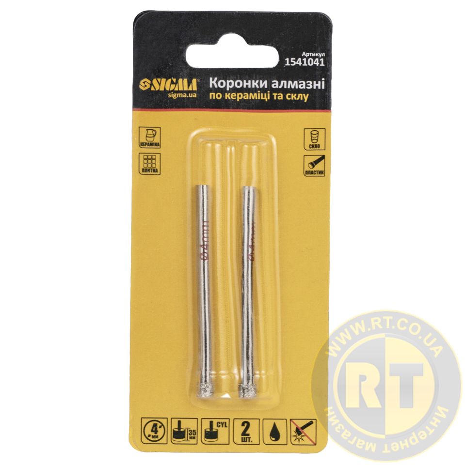 Коронки алмазные по керамике и стеклу Ø4мм (КРАТНО 2шт) SIGMA (1541041)