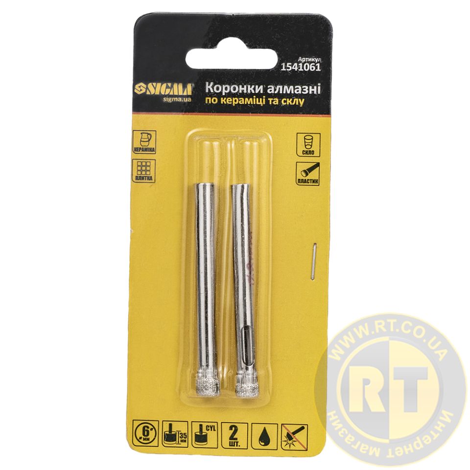 Коронки алмазные по керамике и стеклу Ø6мм (КРАТНО 2шт) SIGMA (1541061)