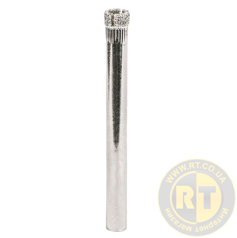 Представляет собой тонкостенную трубку, на одной из сторон которой закреплены алмазы, на другой - хвостовик, который зажимают в патроне электродрели. Разрезы в коронке облегчают удаление фрагмента, который остается внутри после того, как она пройдет материал насквозь.