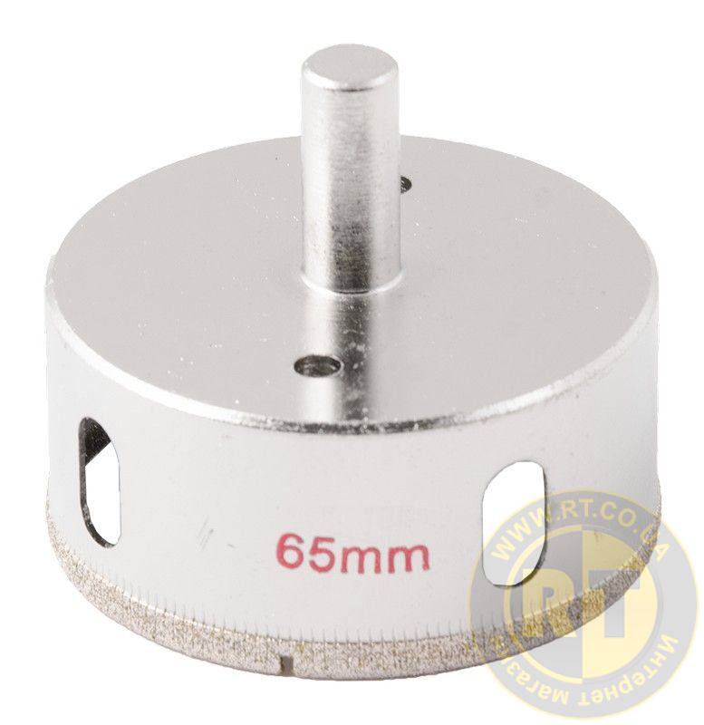 Сверло для стекла и керамики трубчатое с алмазным напылением 65 мм — профессиональный инструмент для аккуратного сверления больших отверстий в твердых и хрупких материалах, таких как стекло, плитка и керамика.