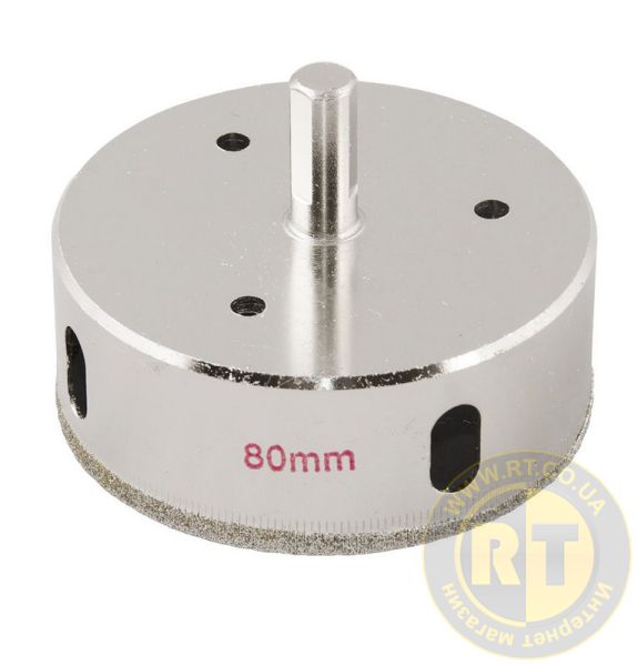 Сверло для стекла и керамики трубчатое с алмазным напылением 80 мм — профессиональный инструмент для точного сверления больших отверстий в твердых и хрупких материалах, таких как стекло, керамика и плитка.