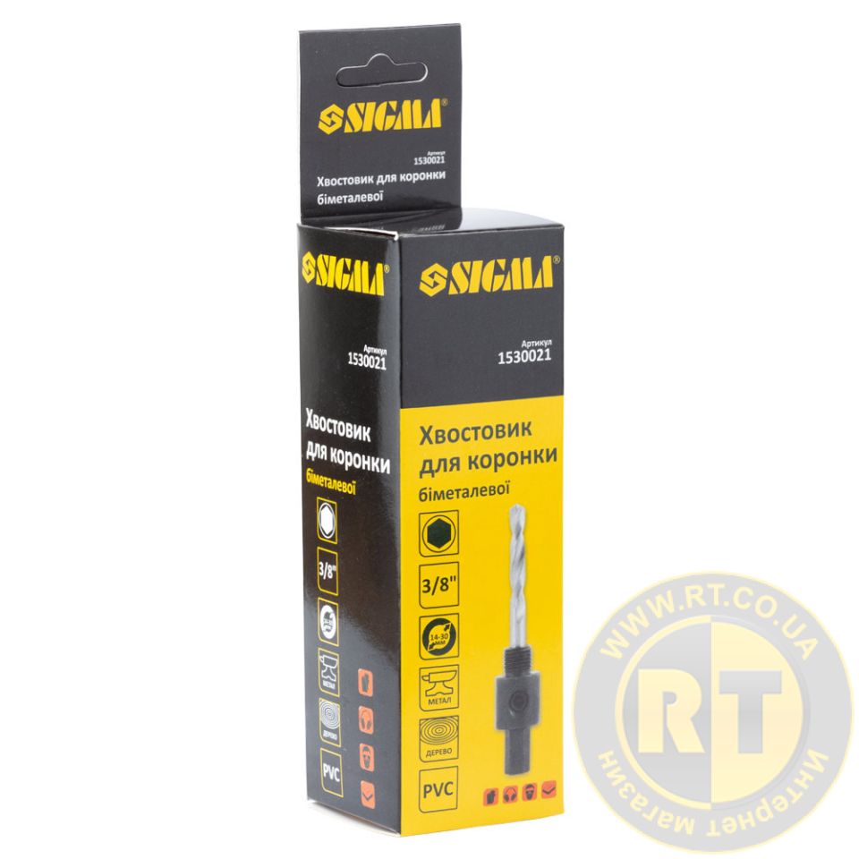 Хвостовик для коронок биметалл 3/8" HEX Ø14-30мм SIGMA (1530021) применяется совместно с биметаллическими коронками и центрирующим сверлом и служит для надежной фиксации в патроне электроинструмента и эффективной передачи режущего усилия.