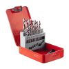 Набор сверл размещен в компактном металлическом износостойком кейсе с персональными отсеками для каждого сверла. Нумерация размера позволит быстро найти подходящее сверло под любые задачи.