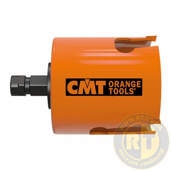 Універсальна коронка CMT 168 мм без хвостовика, з твердосплавними зубами (HW). Ідеально підходять для дерева, фанери, МДФ, цегли, газобетону та пластику. Швидка заміна PUSH & LOCK та ефективне видалення відходів.