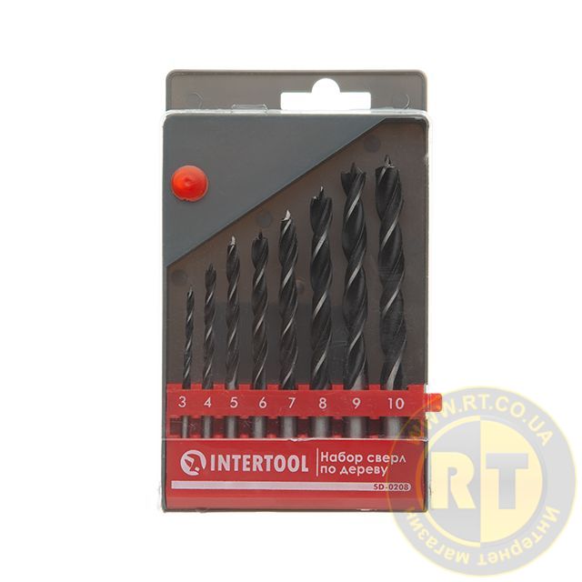 Набор сверл по дереву, 8 шт. (3, 4, 5, 6, 7, 8, 9, 10 мм) INTERTOOL SD-0208