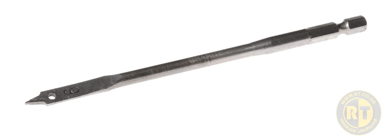 Сверло для дерева перьевое Ø 6 мм, длиной 152 мм с 6-гранным хвостовиком ¼" – надежный инструмент для быстрого и точного сверления отверстий в древесине, ДСП и МДФ. Плоская рабочая часть с острым центрирующим острием обеспечивает стабильный старт без смещения, а специальные режущие кромки способствуют аккуратному формированию отверстия. Удлиненная конструкция позволяет выполнять глубокое сверление. 6-гранный хвостовик гарантирует надежную фиксацию в патроне и совместимость с большинством электродрелей и шуруповертов. Идеально подходит для монтажных, строительных и столярных работ. • высокоуглеродистая сталь HCS