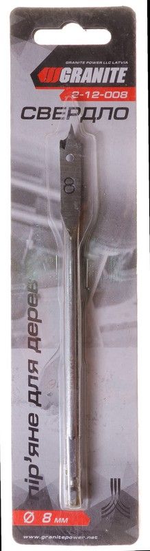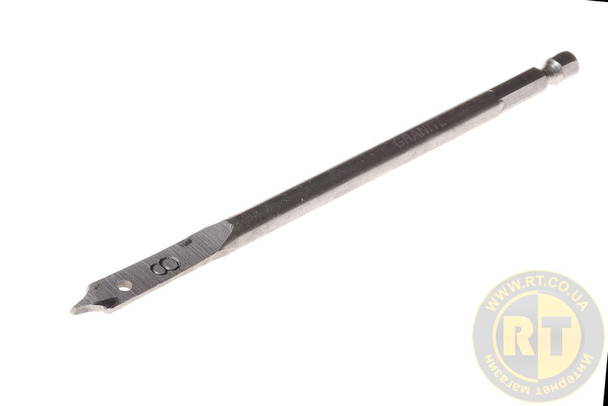 Сверло для дерева перьевое Ø 8 мм, длиной 152 мм с 6-гранным хвостовиком ¼" – эффективный инструмент для быстрого и точного сверления отверстий в древесине, ДСП и МДФ. Благодаря острому центрирующему острию обеспечивается стабильное начало работы без смещения, а плоская форма рабочей части позволяет выполнять ровные и аккуратные отверстия. Удлиненная длина 152 мм дает возможность сверлить более глубокие отверстия. 6-гранный хвостовик гарантирует надежное удержание в патроне и совместимость с большинством электродрелей и шуруповертов. Идеальный выбор для столярных, монтажных и ремонтных работ. • высокоуглеродистая сталь HCS