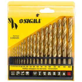Набор сверл по металлу HSS-TIN титановых 19 шт 1.0-10.0мм (пластиковый кейс) SIGMA 1193101