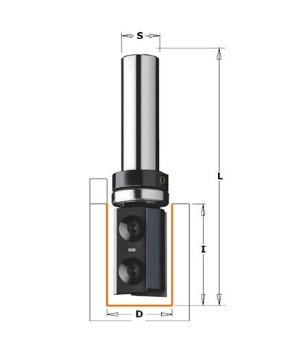 Цей тип фрези зі змінними ножами оснащений верхнім підшипником для фрезерування по шаблону. Форма ножів має кут 30°, для кращого врізання в матеріал. Для чистової обробки торців, фрезерування фігурного профілю і пазів на плитних матеріалах (ЛДСП, МДФ) і заготовках з твердих порід деревини. Для використання на ручних фрезерах або фрезерних верстатах з ЧПУ.