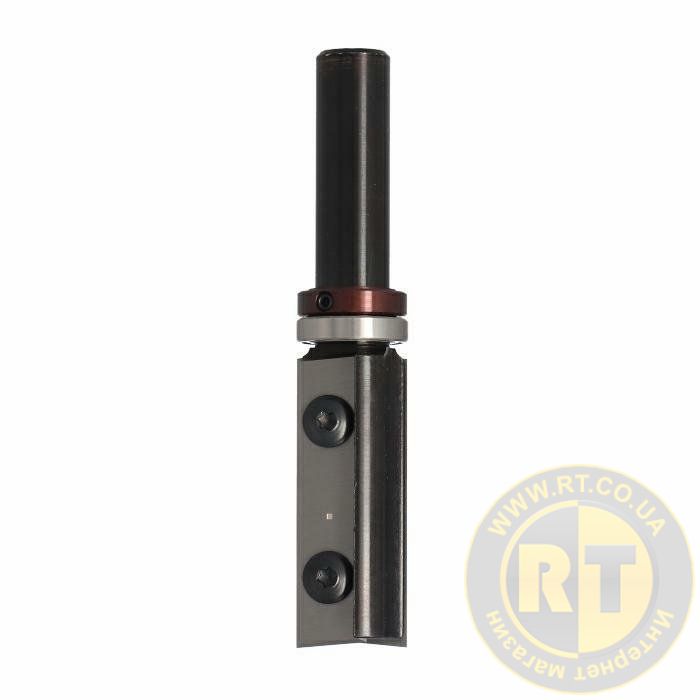 Цей тип фрези зі змінними ножами оснащений верхнім підшипником для фрезерування по шаблону. Форма ножів має кут 30°, для кращого врізання в матеріал. Для чистової обробки торців, фрезерування фігурного профілю і пазів на плитних матеріалах (ЛДСП, МДФ) і заготовках з твердих порід деревини. Для використання на ручних фрезерах або фрезерних верстатах з ЧПУ.