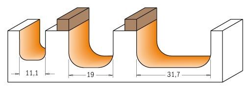 Ця фреза ідеальна для виготовлення чаш, підносів, коробок, обробки дошок або інших предметів. Заокруглені кути фрези між бічними і донними ріжучими частинами створюють гладкі плоскі поверхні. Фреза для чаш з підшипником ідеальна для швидкої і легкої роботи з шаблоном.
