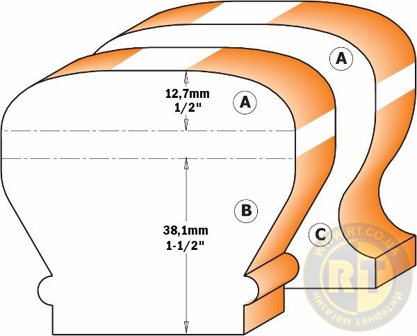 Дана фреза має заокруглення під кутом 30 ° і виступаючий молдинг з радіусом 3,2 мм, що дозволить зробити гарні і функціональні поручні.