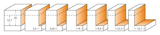 Комплекти з четвертної Фреза і набору підшипників дозволяє Вам вибирати чверть різних розмірів. Змінюючи виліт Фреза можна отримати четверть висотою від 0 до 12,7 мм або від 0 до 19 мм. З допомогою комплекту підшипників можна отримати 6-ть варіантів чверті, найбільший підшипник з набору перетворює четвертну фрезу на обгоночну.