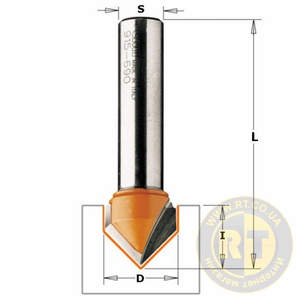Дана фреза робить акуратні і чисті V-подібні пази. Її можна застосовувати для вирішення найрізноманітніших завдань: надріз панелей, створення декоративних елементів, колон, фільонок і т.д.