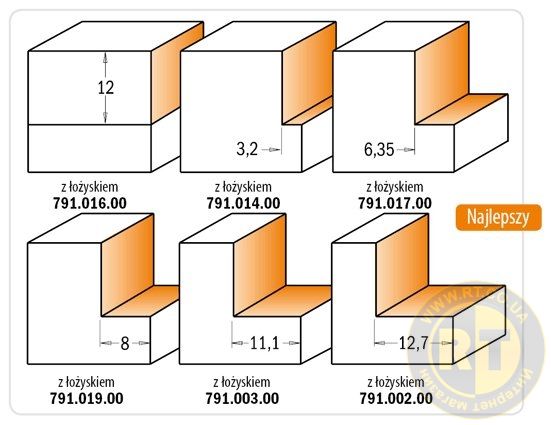 Зубчатые насадки оснащены шарикоподшипниковыми направляющими для ширины паза H= 12,7 мм.