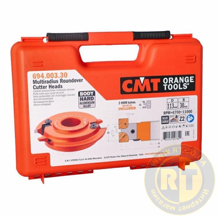 Інноваційна фреза, що має можливість встановлення трьох різних ножів для заокруглень з 6 різними радіусами. Стандартна фреза комплектується ножами з радіусами 5 i 10мм, два інших необхідно придбати окремо, щоб можна було сформувати радіуси розмірами 4-8 мм і 3-6мм. Для використання на фрезерних та форматних верстатах. Для обробки різних матеріалів, найкраще твердої деревини та деревопохідних матеріалів.