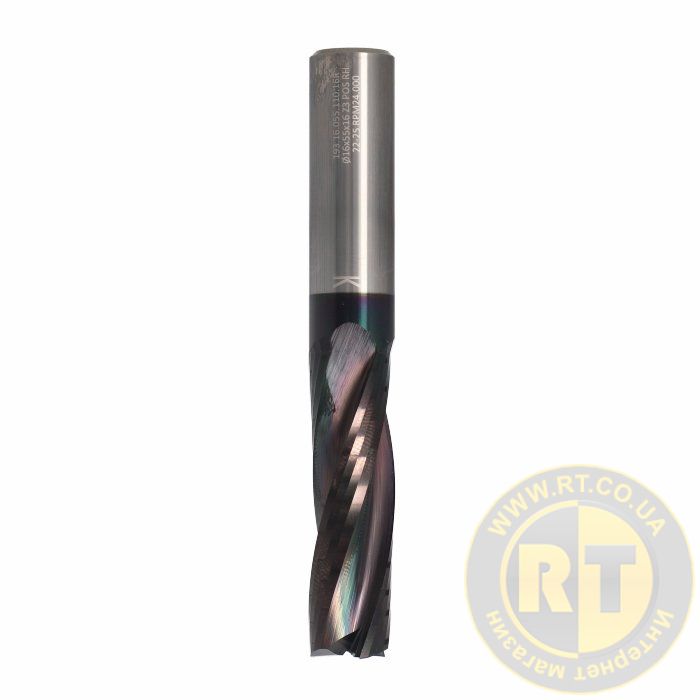 SC01. Фреза спіральна VHM D=S=16 I=55 L=110 RH Z3 з напиленням NaDia CMT SC01.16.055.110.16XR