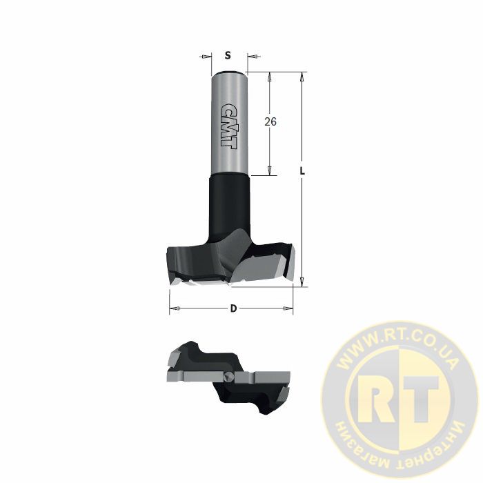 Свердло циліндричне XTREME D=26 L=70 S=10x26 Z=2+2 з ламачем тирси LH CMT 369.260.42