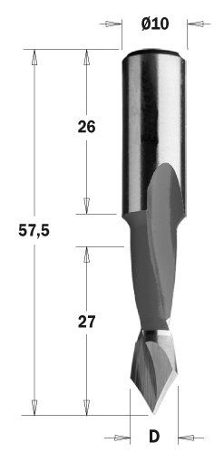 Свердло HW P D=10 I=27 L=57,5 S=10x26 RH CMT 313.100.11