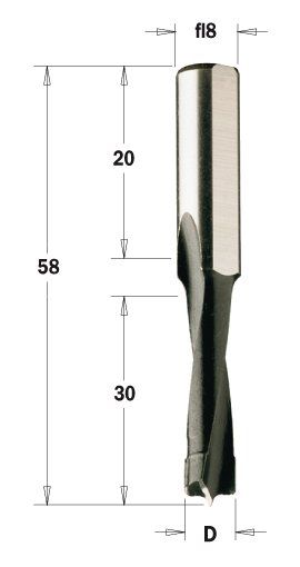 Свердло MAFELL NP HW D=8 I=30 L=58 S=8 RH CMT 312.080.11