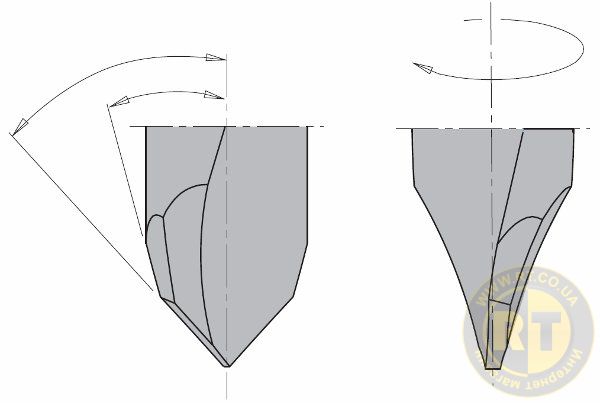 Похилі ріжучі грані по всій довжині і до центру свердла знижують опір свердління і