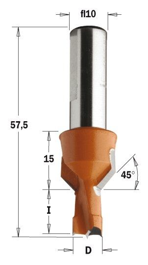376.081.12 Сверло с зинкером NP HW D = 8 I = 15 L = 57,5 ​​S = 10 LH