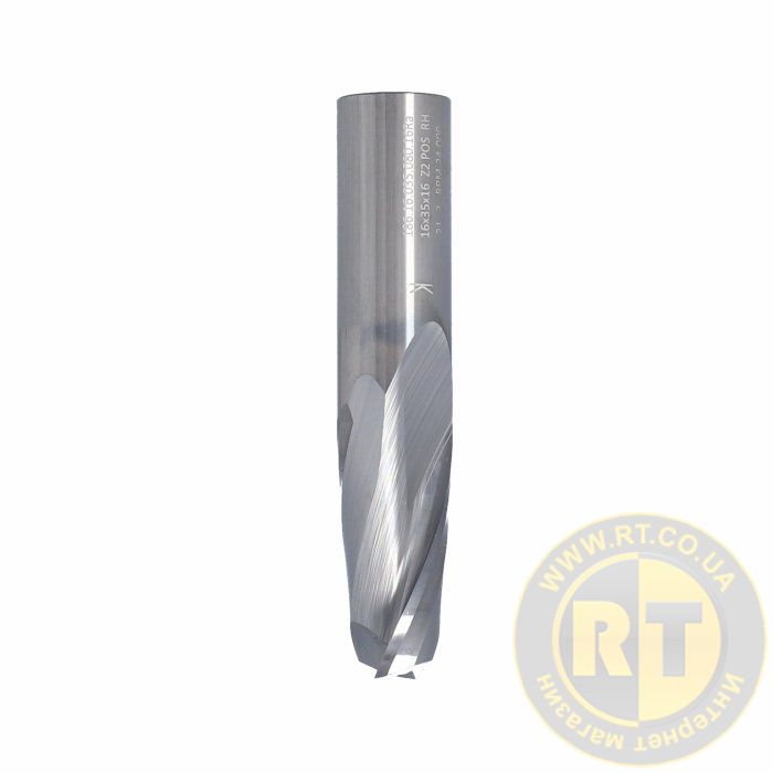 SQ01. Фреза VHM Z2 D=16 I=35 L=80 S=16 RH позитив полірована спіраль алюміній і пластик ITA TOOLS SQ01.16.035.080.16R