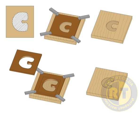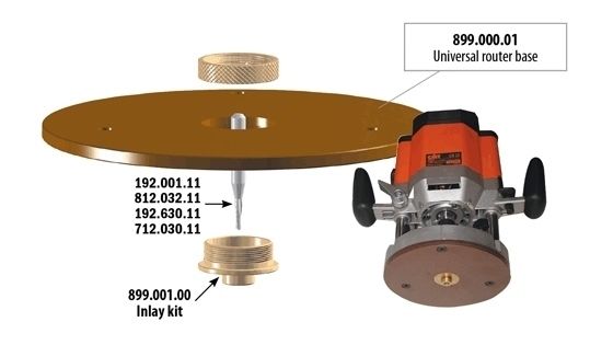 Пристосування CMT inlay kit для гравіювання і вирізання вставок по шаблонах на ручний фрезер кінцевими фрезами.