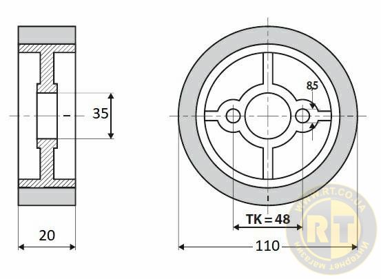 PDG.Ролик D=110 F=35 I=20 для пристроїв подачі ELASTOMERI PDG.110035020.VWA