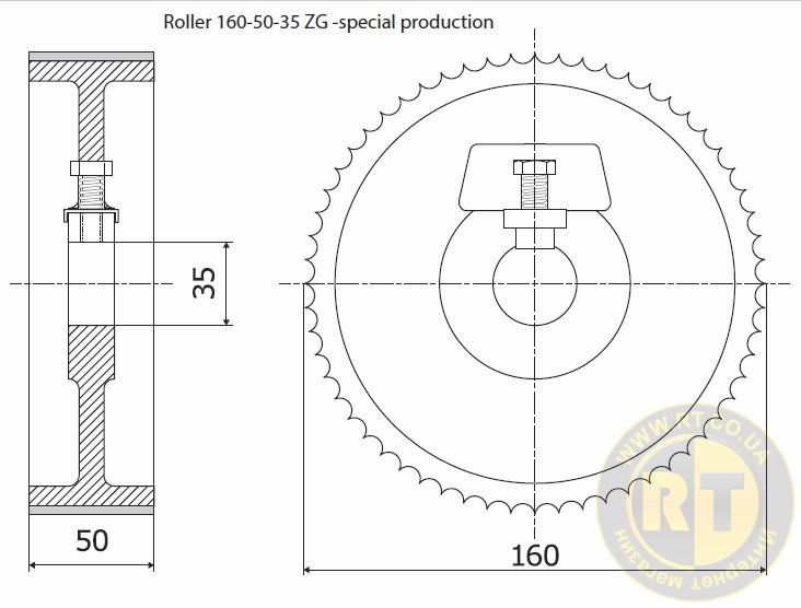 Ролик 160-50-35-10 Z chrom Профіль G, Скошений SCM ELASTOMERI SCS.160035050.WGU