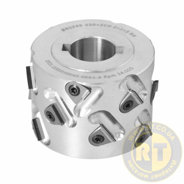 Фреза насадна DIA D=85 I=48 d=30+2CH Z=3+3 (15) a30° H=3 RH підфрезування верхнє 8 мм / нижній DIA ITA TOOLS DGL.085030048.0RB3