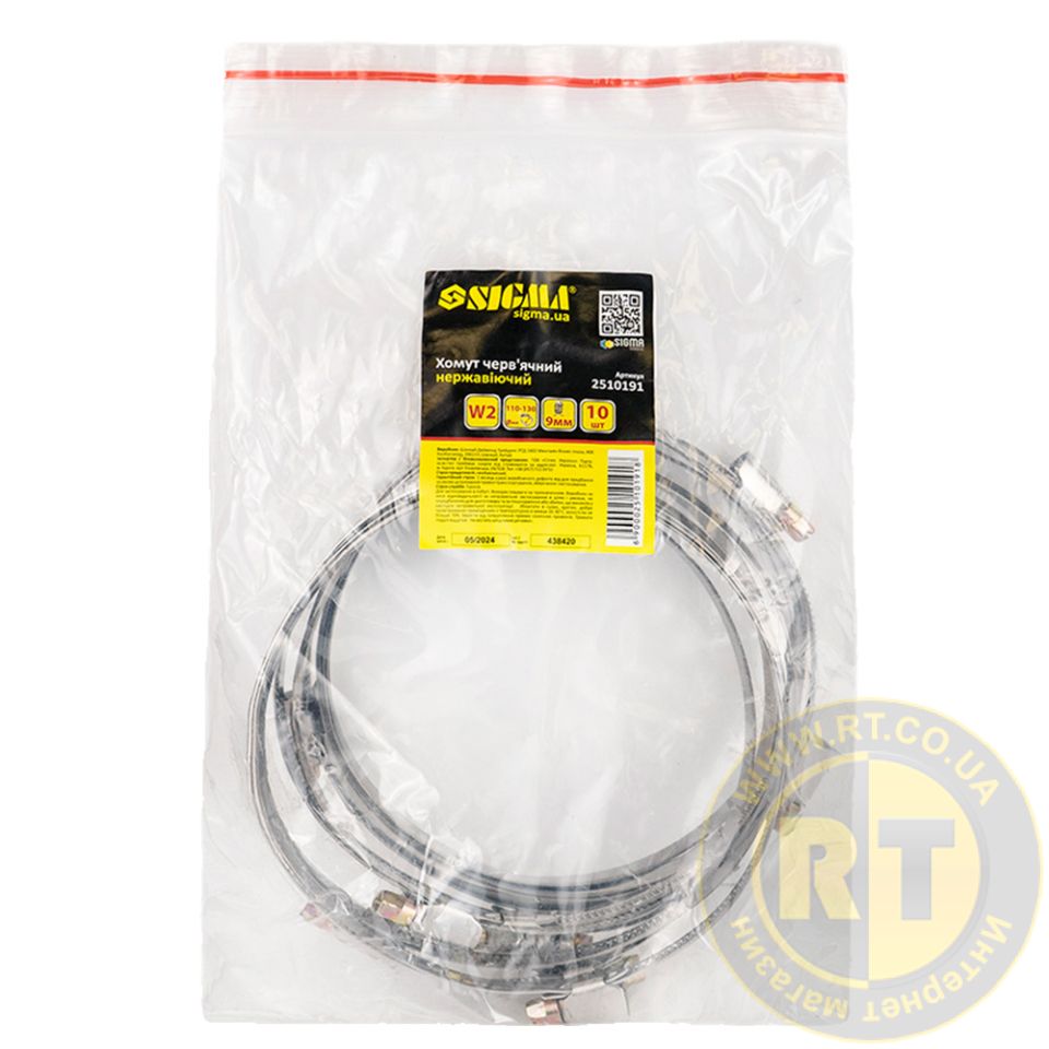 Хомут червячный нержавеющий 9мм D110-130мм 10шт SIGMA 2510191