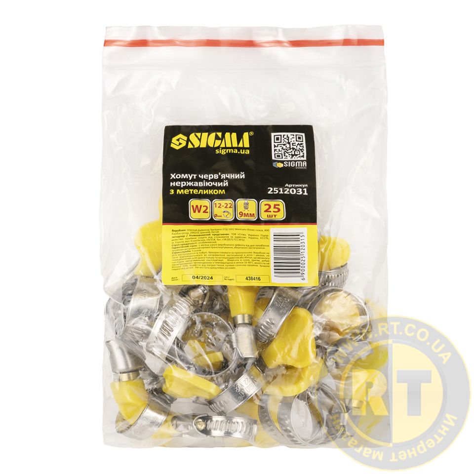 Хомут червячный нержавеющий с бабочкой 9мм D12-22мм 25шт SIGMA 2512031