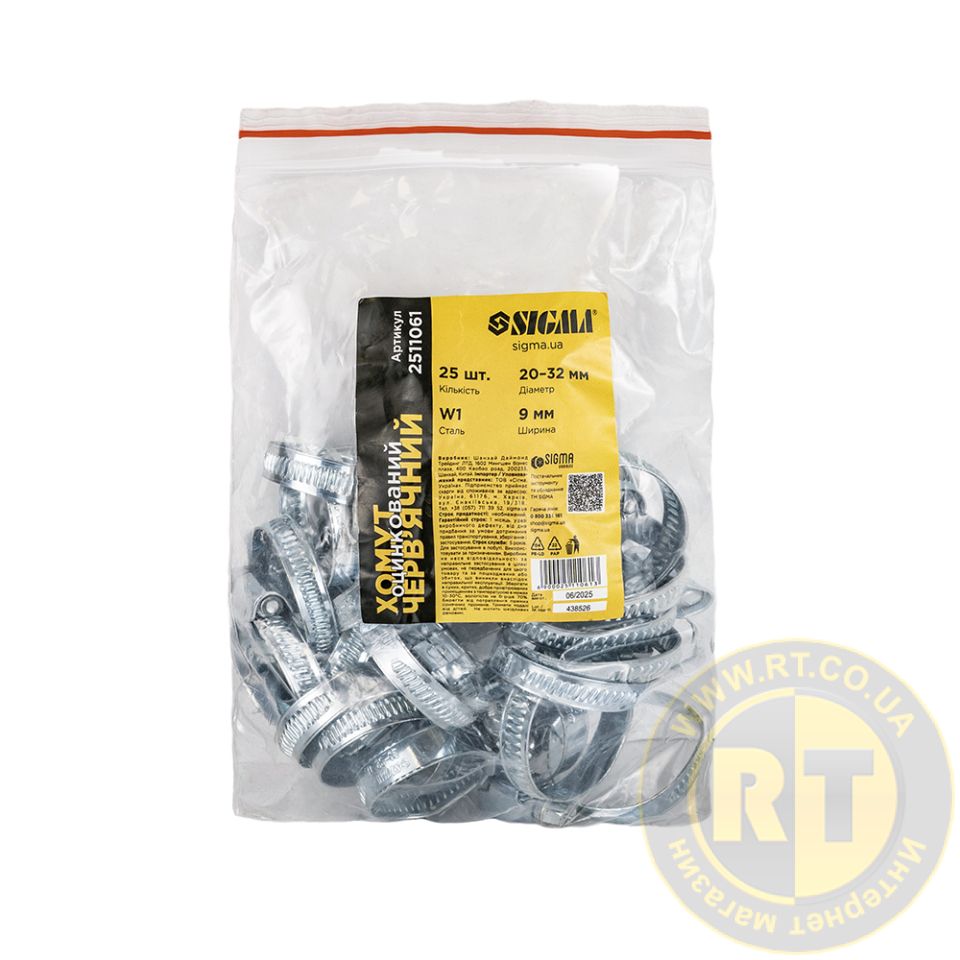 Хомут червячный оцинкованный 9мм D20-32мм 25шт SIGMA 2511061