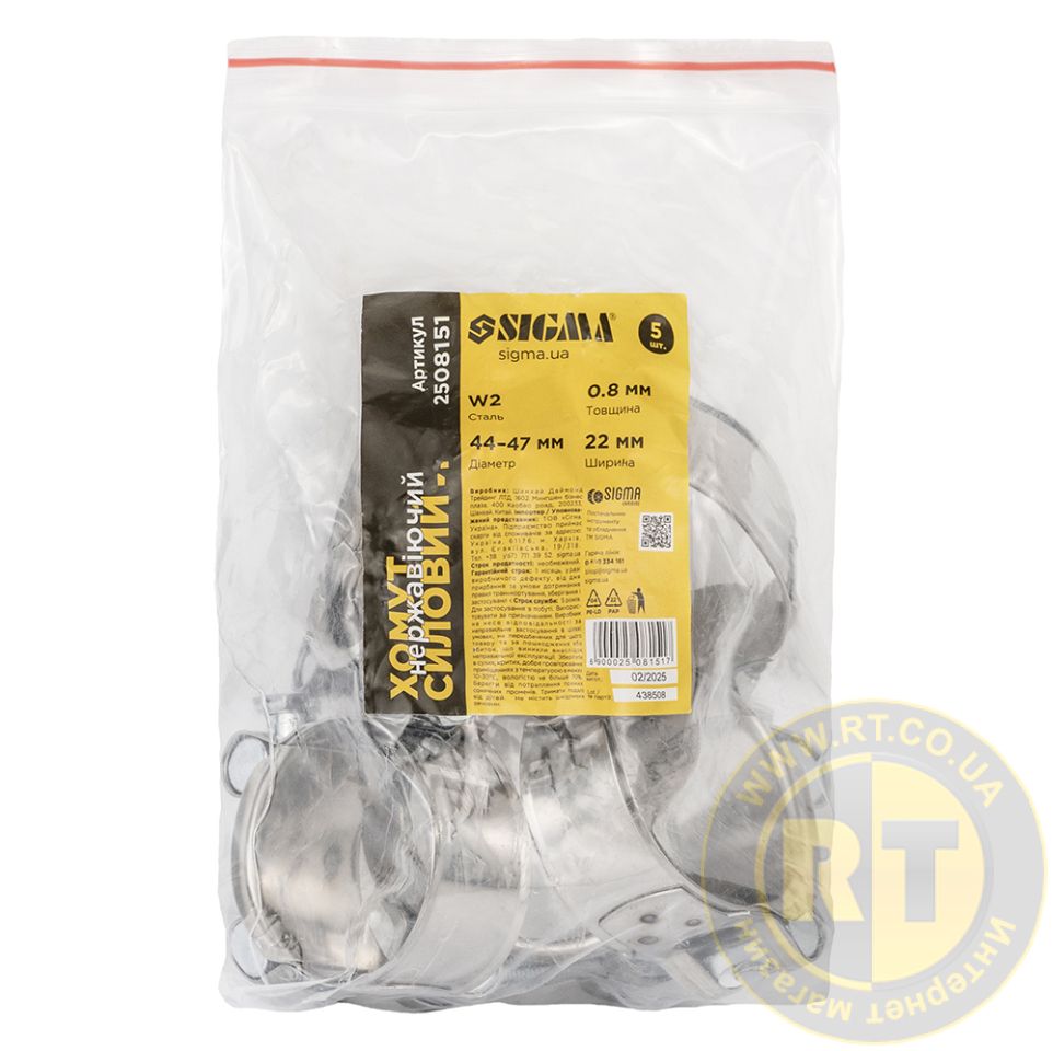 Хомут силовой нержавеющий 22мм Ø44-47мм (КРАТНО 5шт) SIGMA 2508151