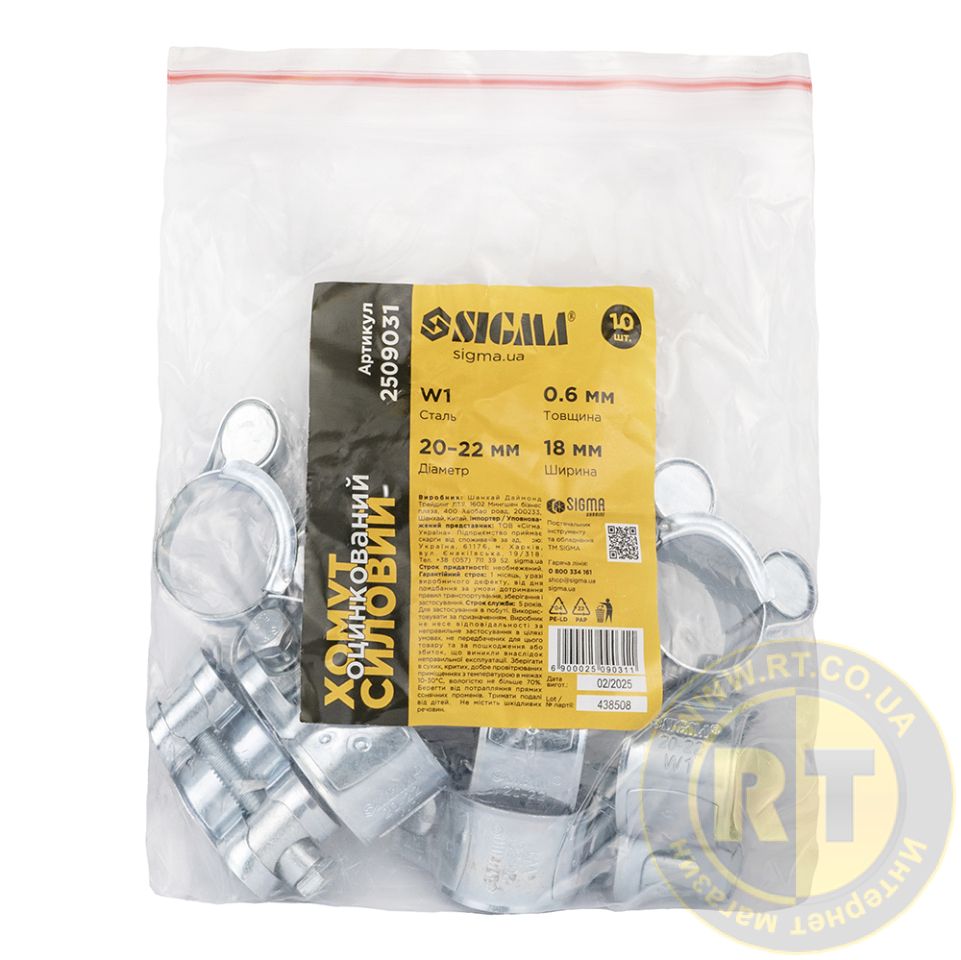 Хомут силовой оцинкованный 18мм Ø20-22мм SIGMA (2509031)