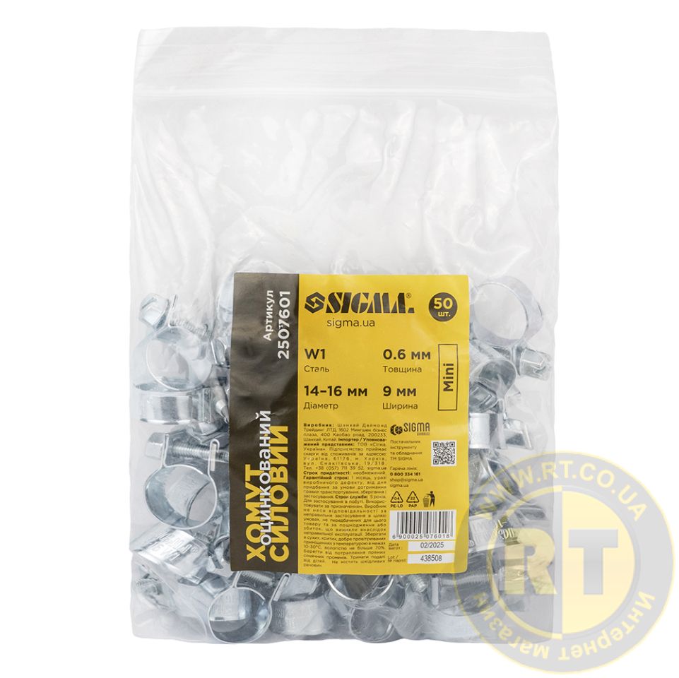 Хомут силовой оцинкованный Mini 9мм Ø14-16мм 50шт SIGMA 2507601