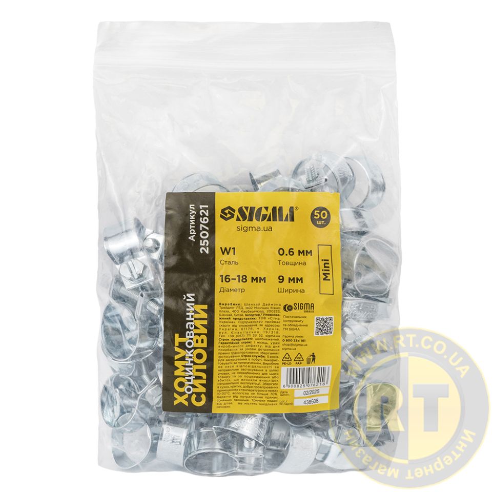 Хомут силовой оцинкованный Mini 9мм Ø16-18мм 50шт SIGMA 2507621