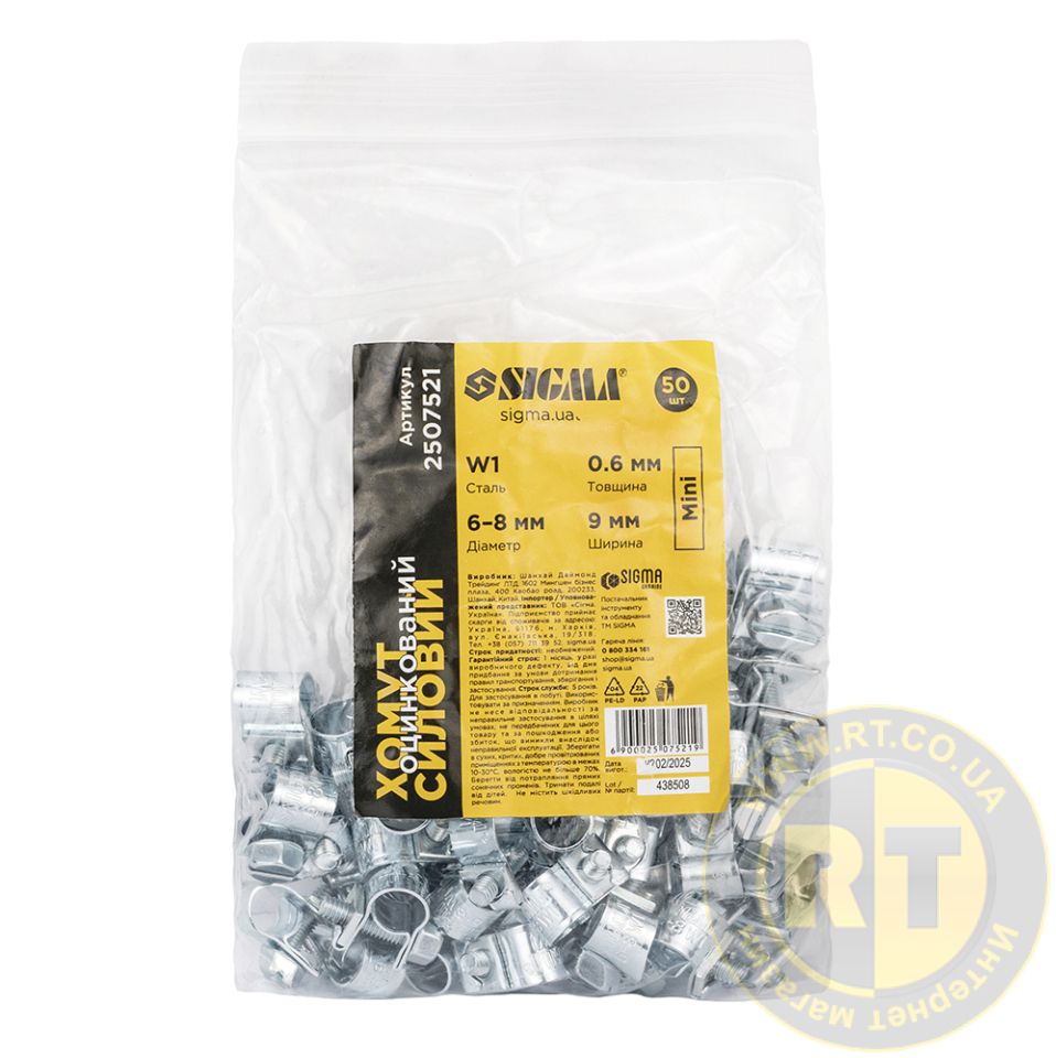 Хомут силовой оцинкованный Mini 9мм Ø6-8мм 50шт SIGMA (2507521)