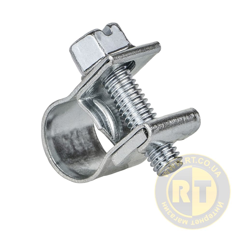 - Винт имеет шестигранную головку с прорезью, что позволяет затягивать хомут с помощью гаечного ключа или отвертки