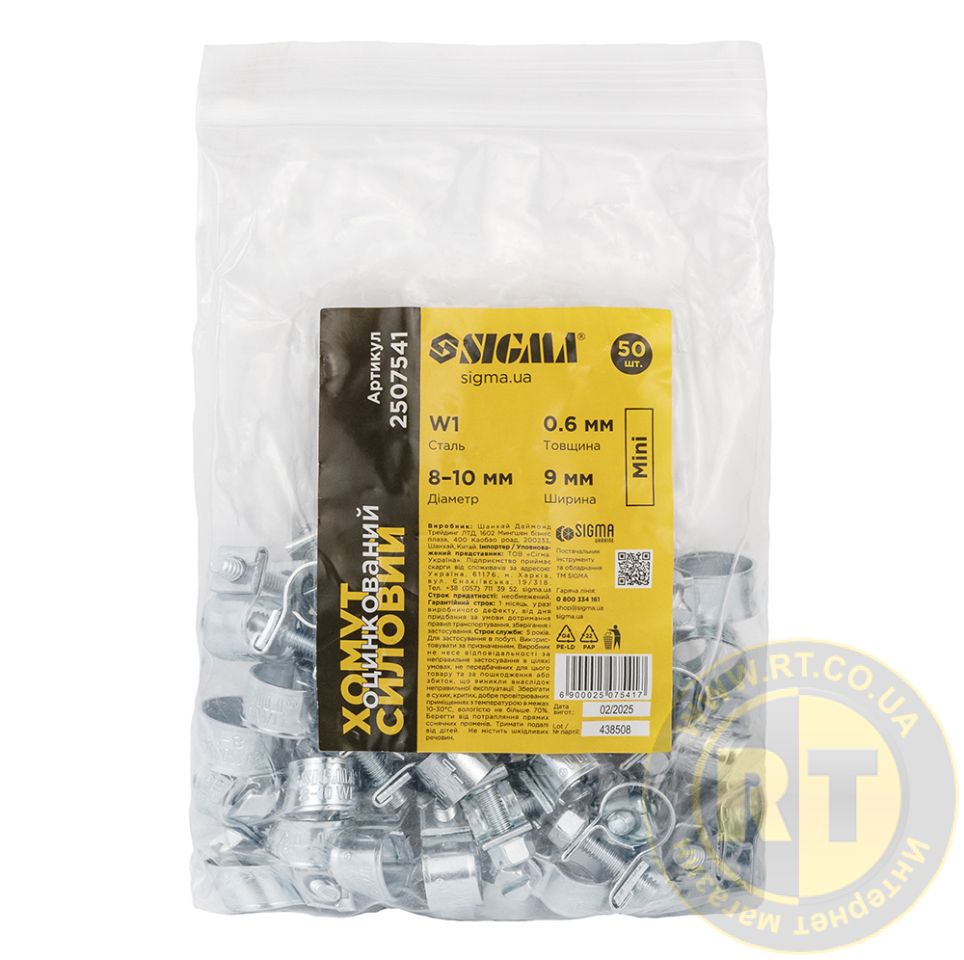 Хомут силовой оцинкованный Mini 9мм Ø8-10мм 50шт SIGMA 2507541