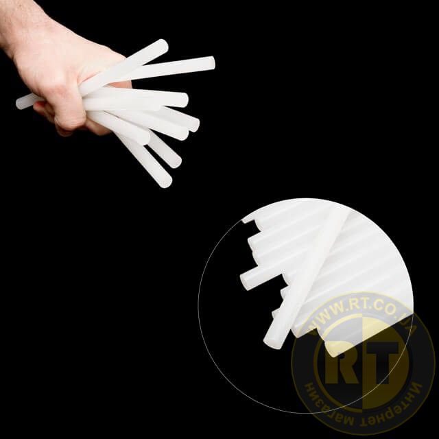 Стержни изготовлены из высококачественного сырья марки Dupont. Такой термоклей состоит из сополимера ЭВА, который нетоксичен, не выделяет запаха и не содержит растворителей. Высоковязкий клей позволяет надежно скреплять различные материалы, затвердевая по мере остывания через 30-40 секунд.