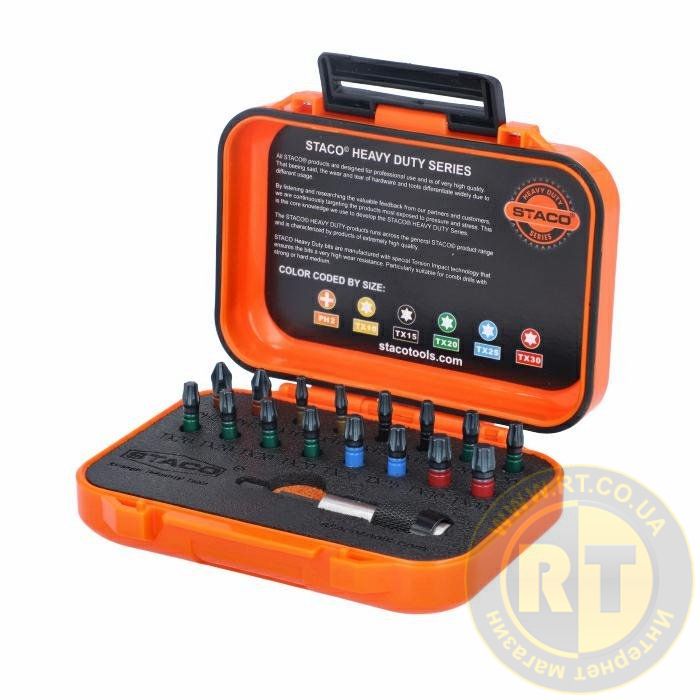 20959. Набір біт 17шт. 1/4x25мм Have Duty Colour TX10, TX15, TX30, PH2 x 2 шт. TX20 x 6 шт. + т STACO 20959.STACO
