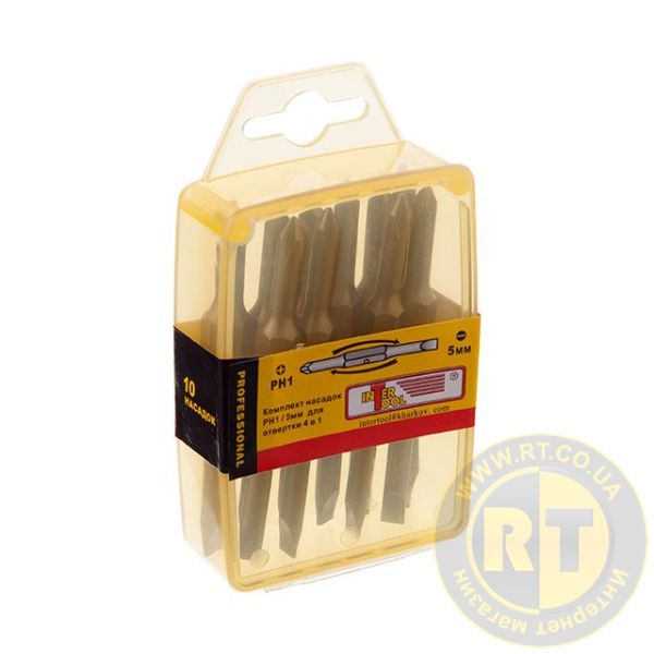 Комплект отверточных насадок PH1/SL5, 4 в 1, уп. 10 шт. INTERTOOL VT-0061