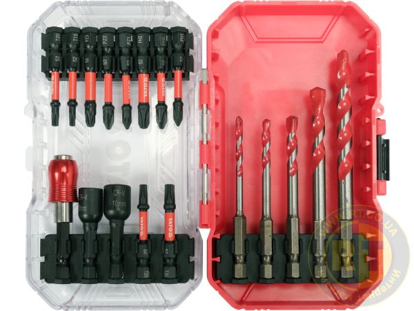 - 10 битов 50 мм: pozidriv: pz1, pz2, pz3, torx: t15, t20, t25, t30, phillips: ph1, ph2, ph3), сделанный из Aisi s2 -устойчивой стали