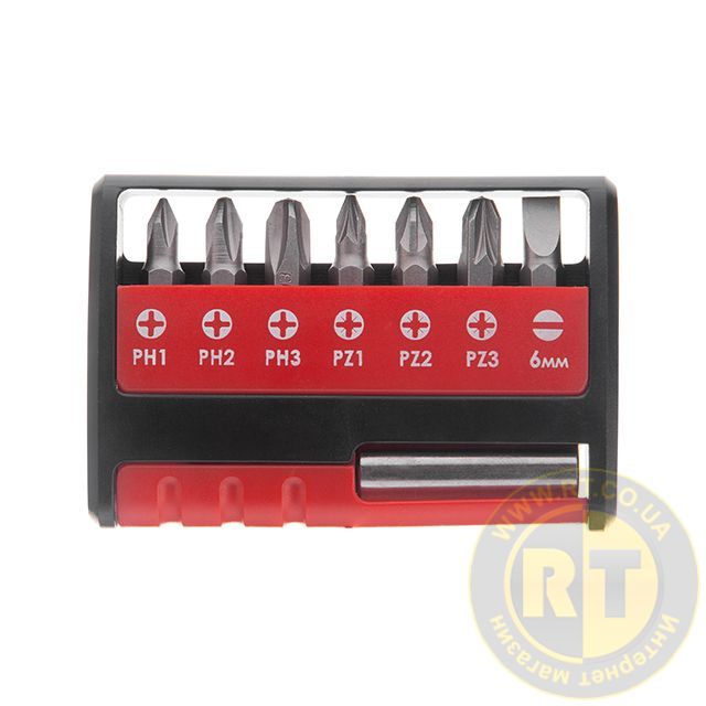 Набор отверточных насадок с магнитным держателем, 8 шт., Cr-V INTERTOOL VT-0107