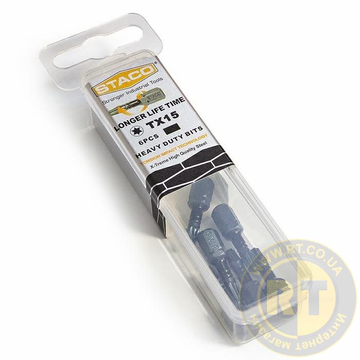20792. Біти 1/4", TX15, HEAVY DUTY, Torsion Impact, 6шт. STACO 20792.STACO