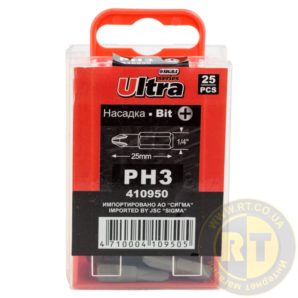 Набор бит PН3×25мм 1/4" 25шт S2 (пласт кейс) ULTRA (4010302) предназначен для использования в ручном, механизированном и электроинструменте под тип шлицев PH.